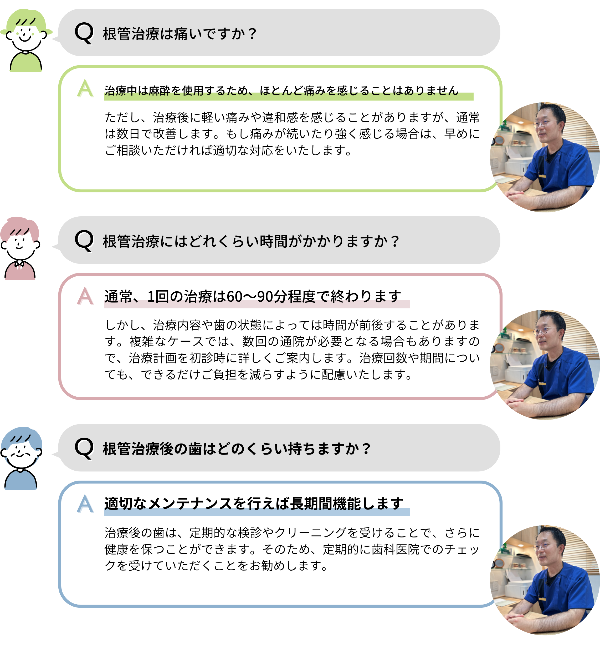 当院では、できる限り歯を残す治療を第一に考え、根の状態を精密に診断した上で最適な方法をご提案します。