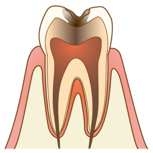 虫歯が神経に到達し、激しい痛みを伴うことがあります。