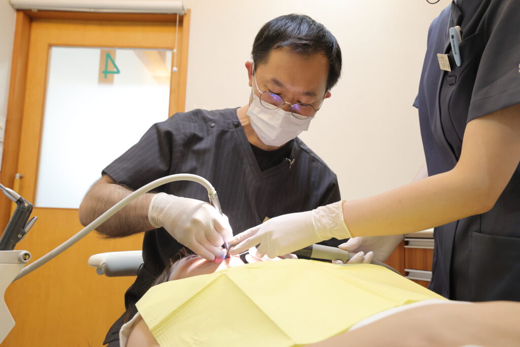 すべての治療で使用するわけではありませんが、日常的に拡大視野での処置を行うことで、精密治療技術を磨き続け、より確実な診療につなげています。マイクロスコープを使用することで、肉眼では見えない細かな根の中や分岐、ひび割れまで正確に確認でき、感染源の取り残しを防ぎ、再発リスクを大幅に低減します。