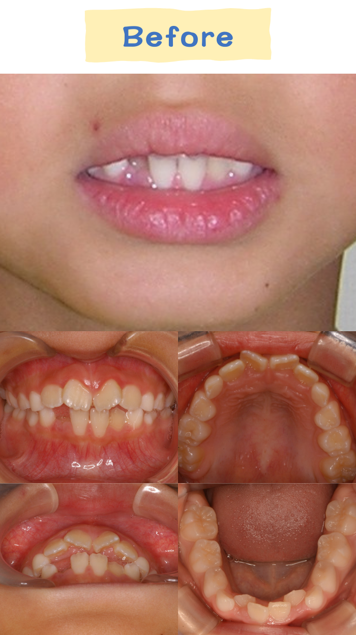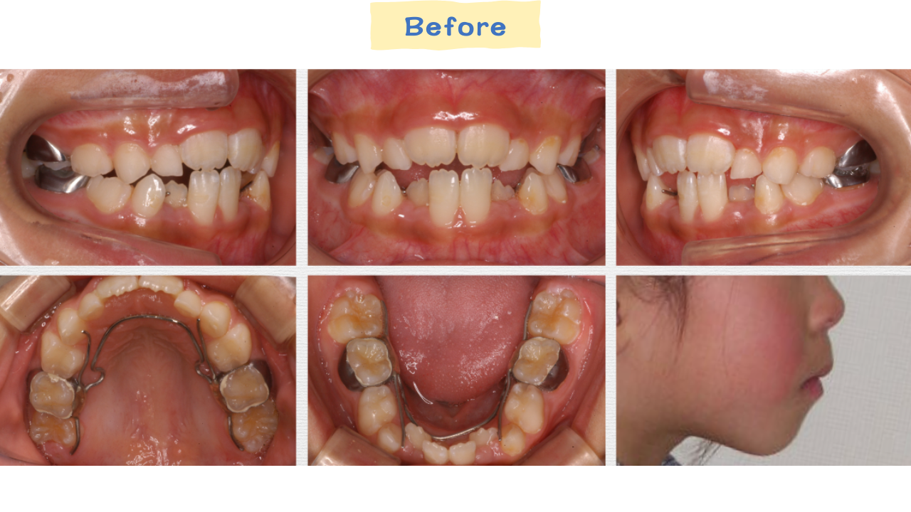上の前歯が前に出ており、口が自然に閉じにくい状態でした。